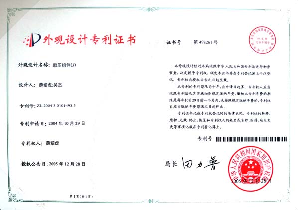 宝得公司“取压组件”获得4项国家专利证书