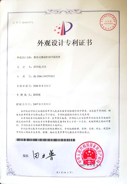 宝得公司“整体式测量控制节流组件”获得国家专利证书